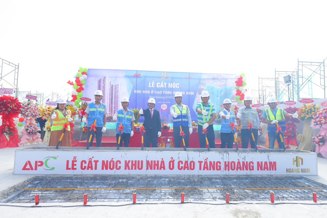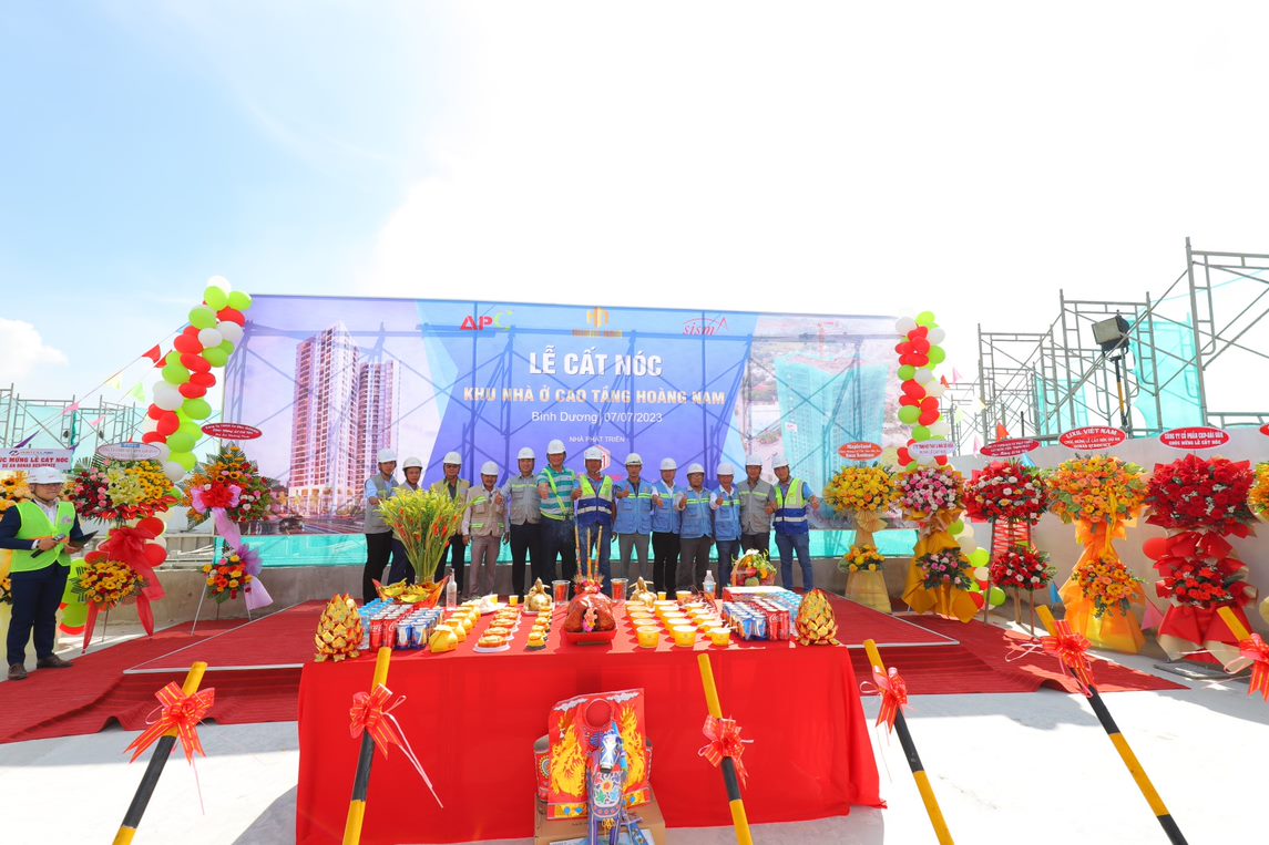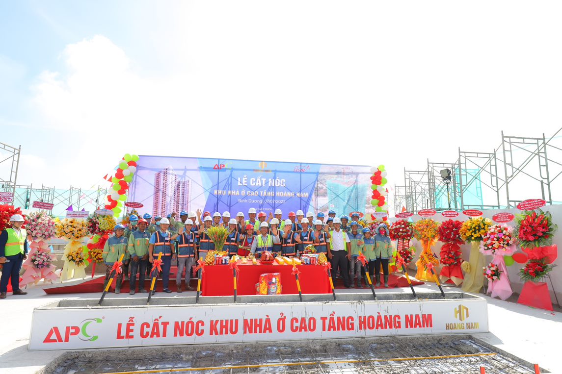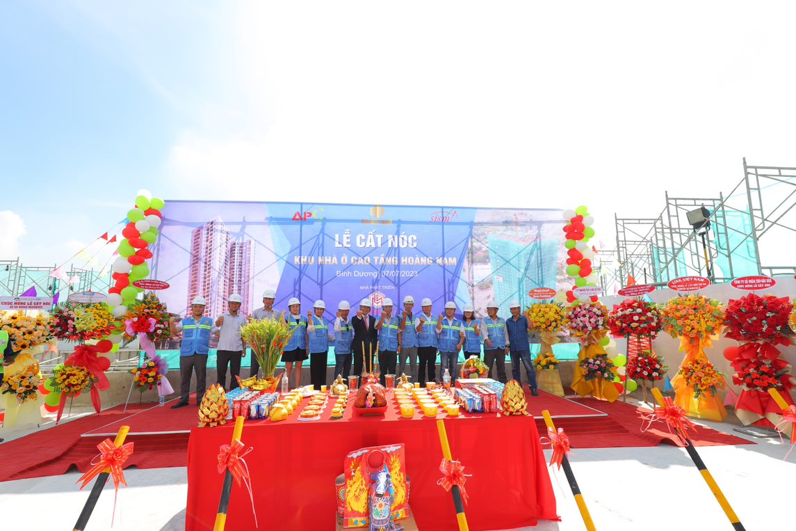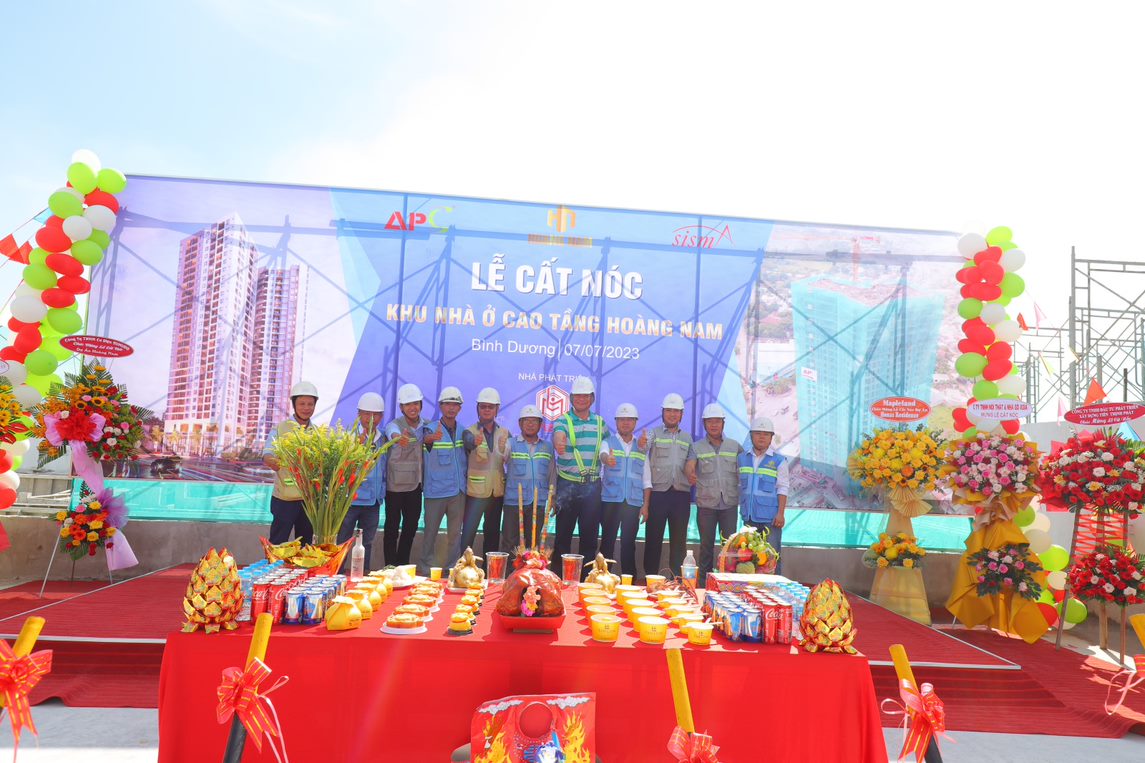 - Sáng ngày 07/07/2023, tại Đại lộ Mỹ Phước - Tân Vạn, Thành phố Dĩ An. Chủ Đầu Tư - Công ty TNHH Dịch Vụ BDS & Xây Dựng Hoàng Nam, Đơn vị QLDA & TVGS - Công ty CP Tư Vấn SISMA và Đơn vị Tổng thầu thi công - Công ty CP Xây Dựng An Phong đã hân hoan tổ chức thành công buổi lễ cất nóc Dự án Khu nhà ở Cao tầng Hoàng Nam - Honas Residence gồm 02 tầng hầm và 29 tầng căn hộ.