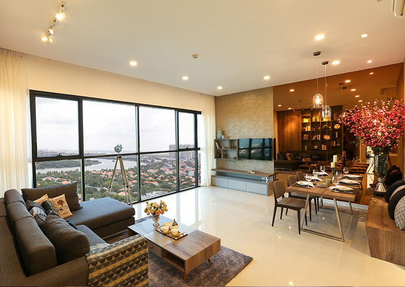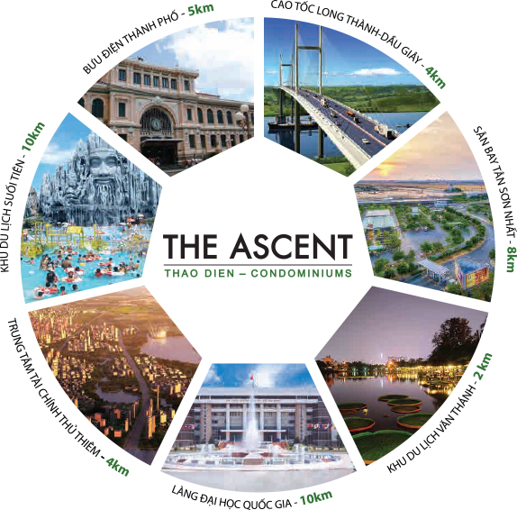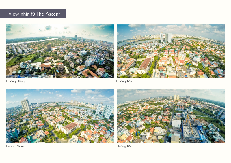 Đột phá với chiều cao thông thủy lên đến 3,2m, vách kính ôm trọn mặt ngoài nên các căn hộ tại The Ascent – Thao Dien Condominiums đều có hướng nhìn trải rộng ra những cảnh quan tuyệt mỹ: Khu Thủ Thiêm, Tân Cảng năng động; bán đảo Thanh Đa thanh bình; một dòng sông Sài Gòn uốn lượn mềm mại; những biệt thự sang trọng nằm ẩn mình dưới những tán cây hay vẻ đẹp huyền ảo của Sài Gòn khi lên đèn.