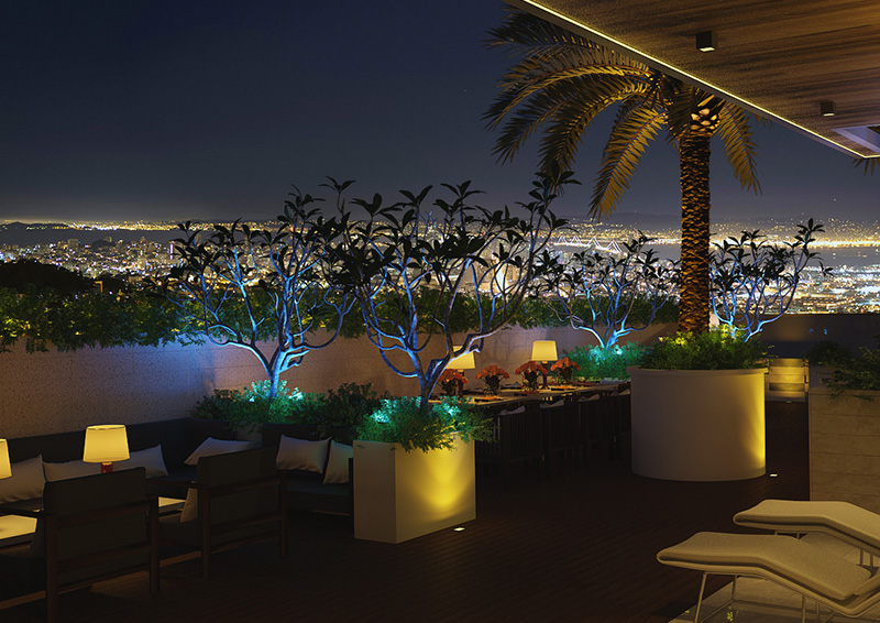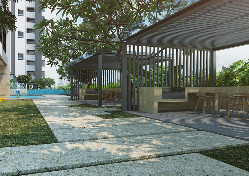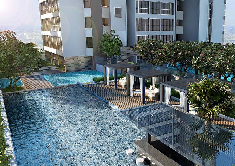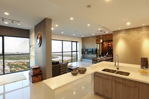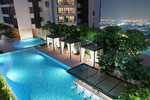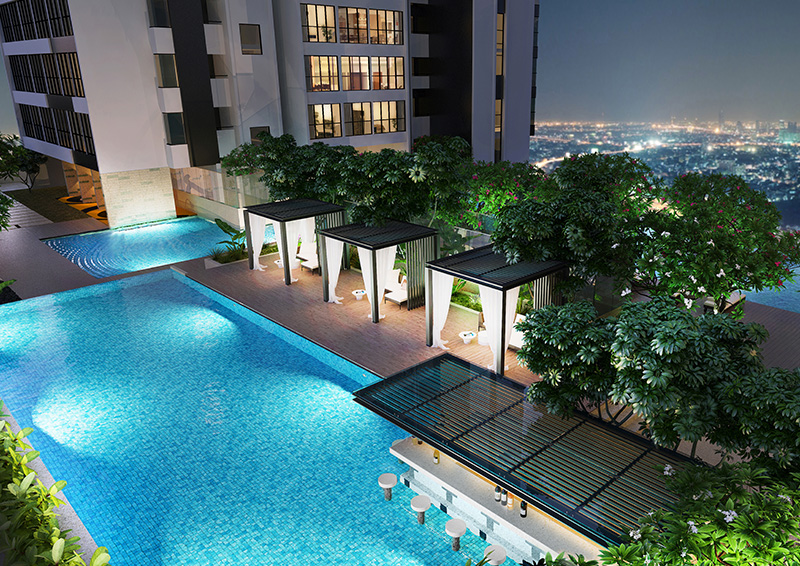 Tiện ích: 3 tầng đậu xe tại khối đế, 3 hồ bơi nước ấm, Pool Bar, Cabana, khu BBQ, Gym, Spa, hồ ánh sao v.v..